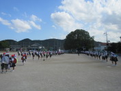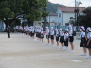 代表委員会で決まった、新たな形のあいさつ運動です。一斉下校時,担当の学年が前に並んでみんなであいさつをしてから下校します。最初は6年生が担当しました。