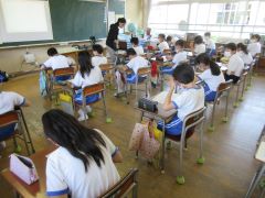 3年生がICT支援員の先生とパソコンを使って勉強しました。この時間はミライシードを使って,2年生の学習を中心に復習をしました。正解するごとに嬉しそうな声が聞こえてきました。